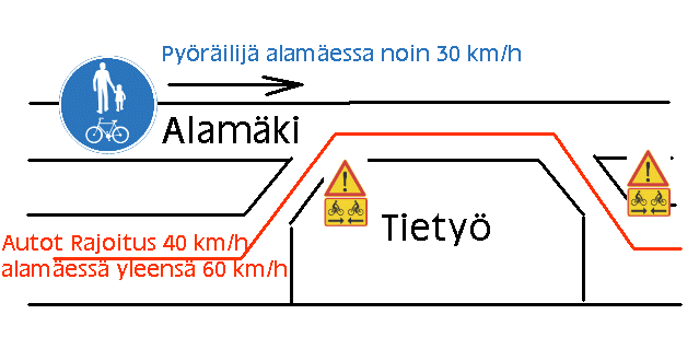 Autoilijoille olisi ehdottomasti pitänyt asentaa pyöristä varoittava liikennemerkki ja varoittaa tietyöstä myös pyöräilijöitä ja jalankulkijoita.