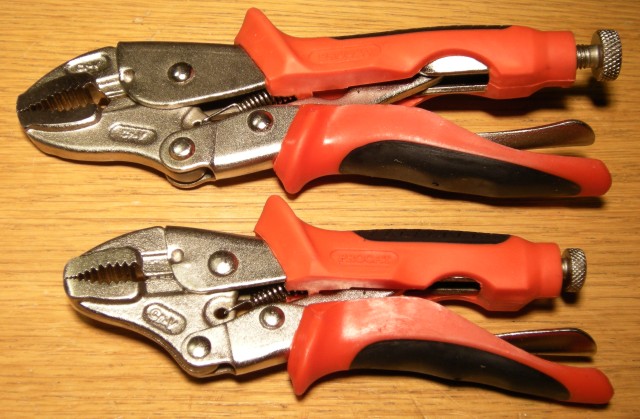 Useiden työkalujen joukossa Lidlissä oli myös kolmen lukkopihdin sarja myynissä. Tässä sarjassa on kahdet sellaiset pihdit joita en ehkä tarvitse mutta kai niillekin käyttöä löytyy. Myymälässä oli yksi paketti avattuna joten tutustuin pihteihin ja lähinnä suurimpiin tavallisiin. Ne tuntuivat toimivan ihan hyvin ja laatu vaikutti hintaan nähden asialliselta. Pikaisen tunnustelun jälkeen päätin sitten ostaa paketin niitä hintaan 7,99 euroa.