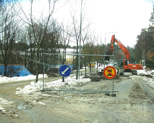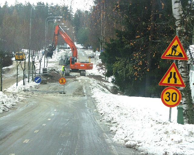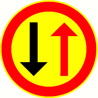 Keravalla on työmaatilanne jossa on jouduttu sulkemaan koko ajotie autoilta ja ohjaamaan liikenne kevyen liikenteen väylälle. Saavuttaessa toisesta suunnasta, on liikennemerkki 221 "Etuajo-oikeus kohdattaessa" joka kertoo, että ajajalla on etuajo-oikeus (merkki tosin on väärin päin!). Mutta toisesta suunnasta tulevalla ei olekaan tarvittavaa merkkiä 222 "Väistämisvelvollisuus kohdattaessa", joka kertoo, että pitäisi väistää. Jos kolari sattuu niin kuka maksaa? Entä onko oikein, että kevyen liikenteen väylällä on edelleen kevyen liikenteen merkki vaikka väylällä saa ajaa autolla?![]()